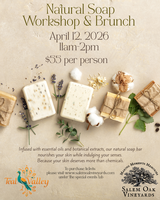 Order your ticket to enjoy an afternoon with Teal Valley for a natural soap workshop! All supplies will be provided. Class promptly will begin at 11am, so please arrive early. During this class you will be taught how to make homemade natural soaps. Each person will be able to take home 4 bars they made in class. While working sip & snack on wine or food that can be ordered from Salem Oak Vineyards; two item purchase is required. Soap workshop, brunch, and good company!